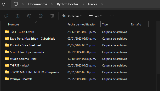 He incluido una carpeta para pistas personalizadas dentro del archivo RhythmShooter.zip.